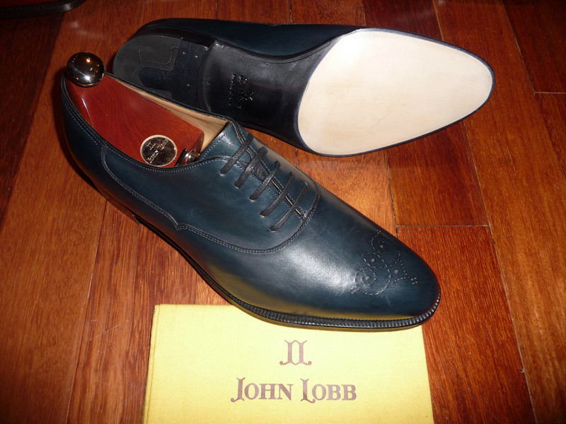 Siniset jalkineet muuttuvat osaavissa käsissä upean harvinaisiksi pukukengiksi värjäyksen myötä. Sininen väri saa päälleen monta kerrosta mustaa väriä, kunnes oikea sävy on saavutettu: tummansininen jalkine, joka on niin musta että se käy mustasta. Lopputulosta voisi luonnehtia Windsorin herttuan yönsinisen frakin kaltaiseksi – sävy on taatusti tumma ja riittävän formaali, mutta oikeassa valaistuksessa sinisyys paljastuu. Tällaista paria en koskaan ole nähnyt kuvassa tai luonnossa, mutta esittämäni vision toteuttaja saa omakseen hyvin harvinaisen jalkineparin, joka hakee sävynsä upeudessa vertaistaan.