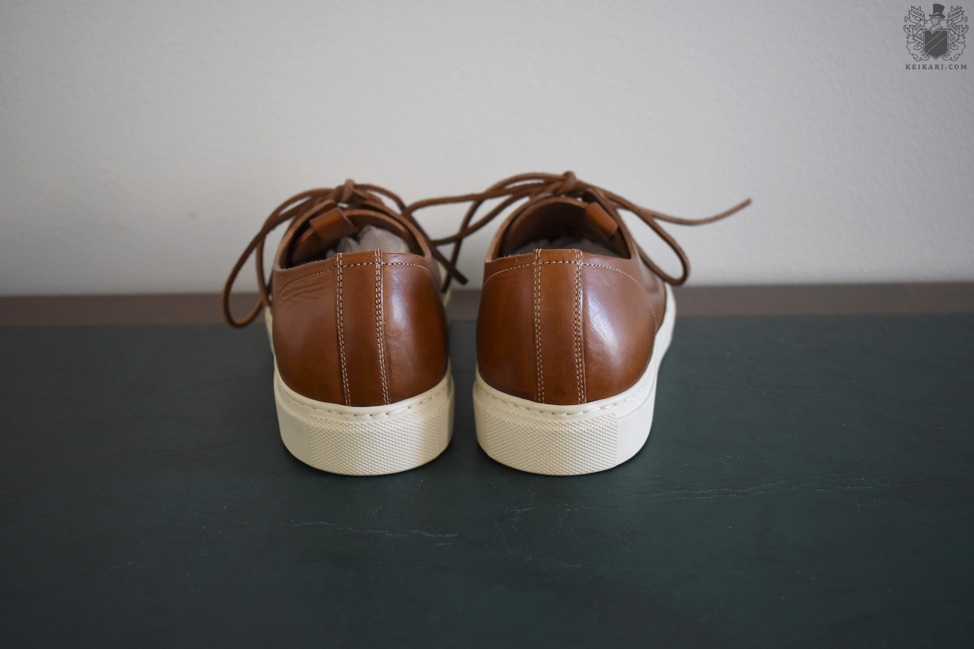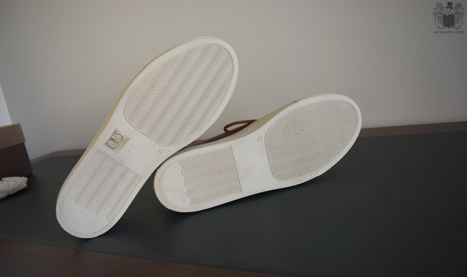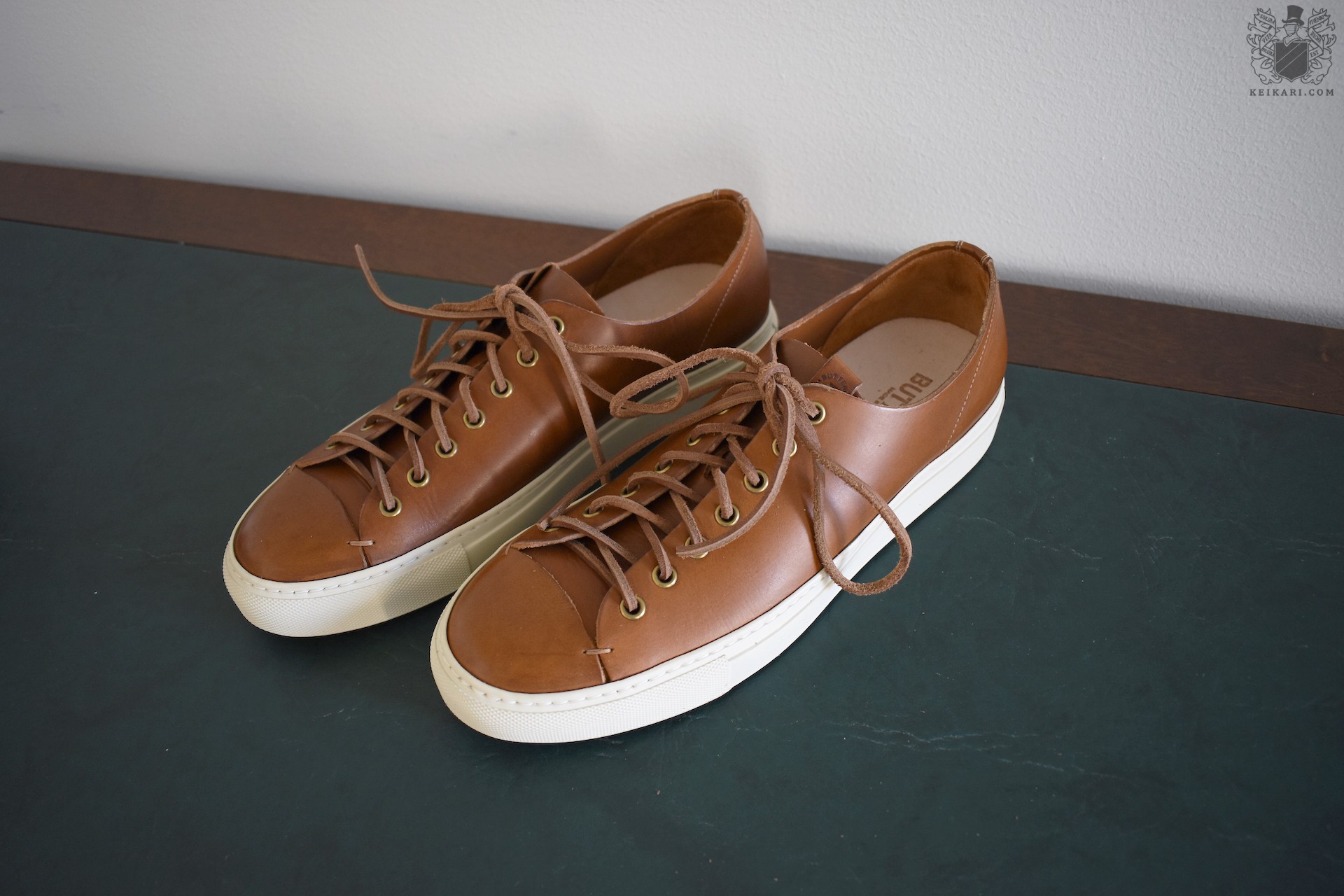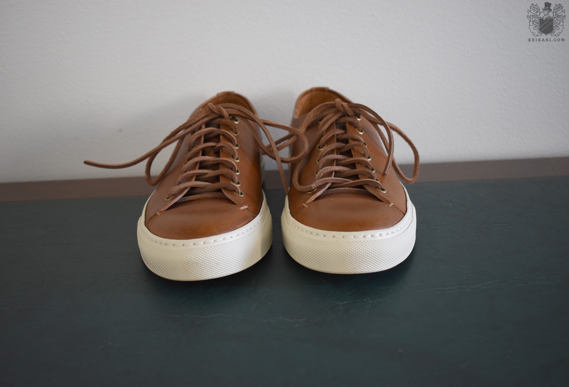 Tänään Keikari tarkastelussa on Butteron tunnettu tennari mallinimeä Tanino, joka saapuu lainaksi CoC:n varastosta. Vaaleanruskea malli on tavanomainen plimsoll-tennari, jossa on arkkityypin mukainen valkoinen kumipohja, mutta ulkomuodon sijaan juju onkin materiaaleissa. Päällinen on mukavan sileää ja siistiä vasikkaa, joka tuskin kavahtaa kenkälankkia. Pintanahka näyttääkin enemmän pukukenkien materiaalilta kuin tennareiden tavalliselta aineelta.