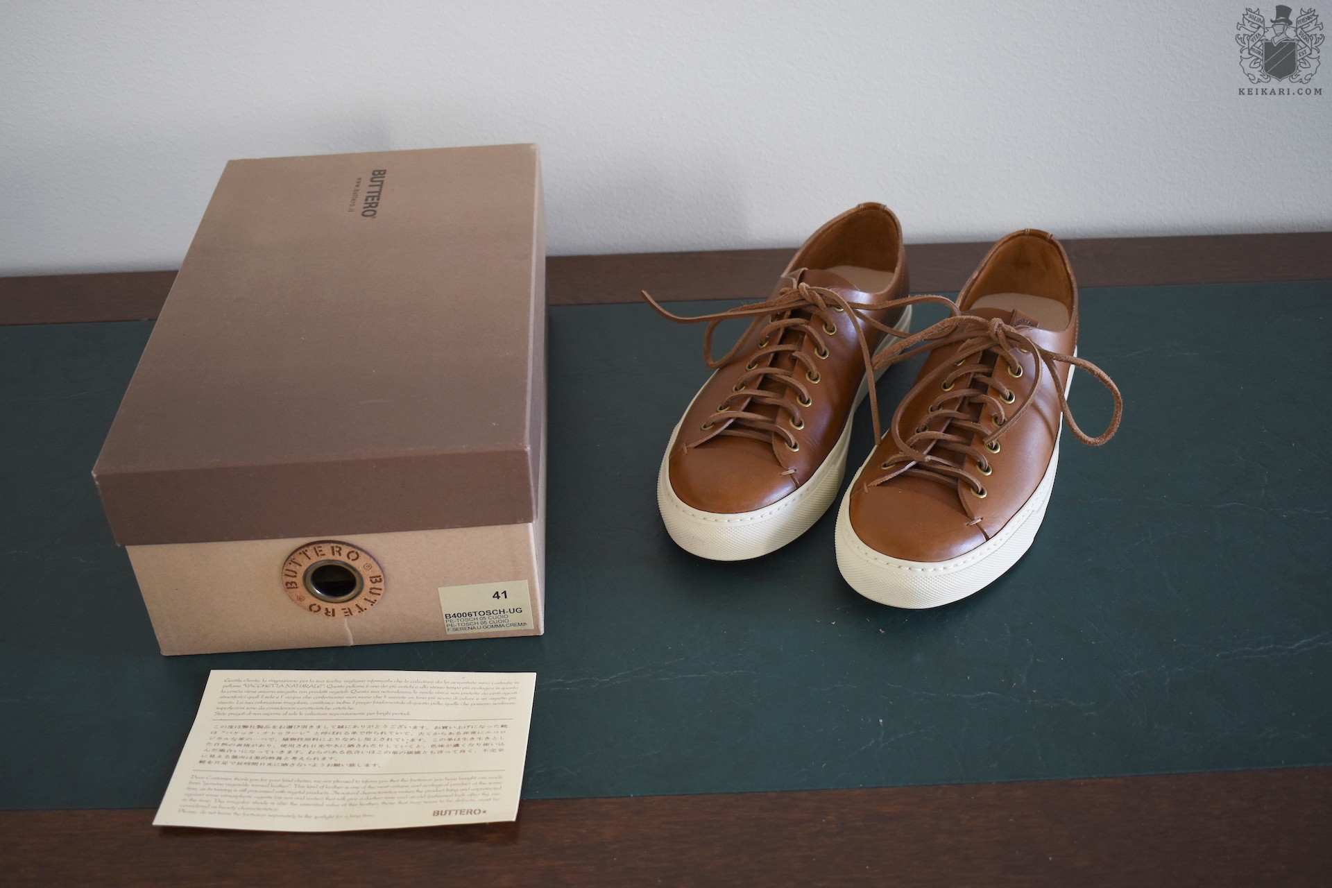 Buttero käyttää päällisissä vasikannahkaa ja vuodat parkitaan kromin sijaan kasviaineilla. Vasikka on vahvempi ja kasvitanniinien avulla sen väri patinoituu voimakkaammin. Tällainen nahka kuitenkin maksaa enemmän kuin tennareissa yleinen puuvilla tai perusnauta, joten Butterot kilvoittelevat asiakkaista niin sanotussa preemio-tennareiden luokassa. Myös hinnoissa.