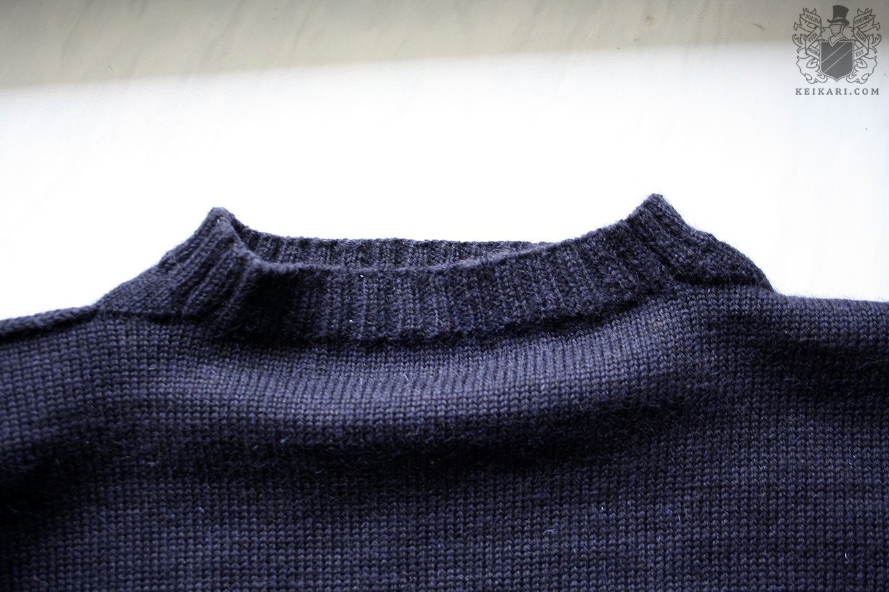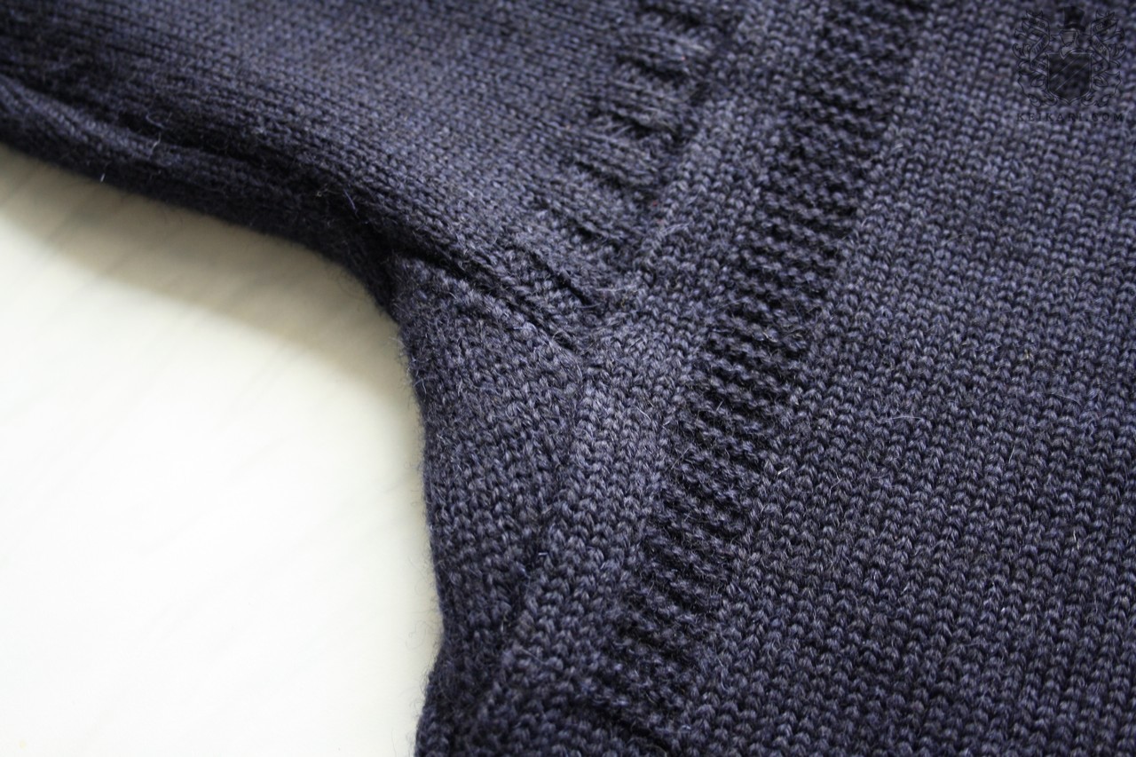 Esimerkkineuleena Le Tricoteurin Guernsey hauiksen kohdalle sijoitetuilla hartiasaumoilla