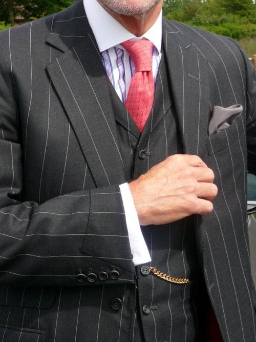 Sääli vain, että valkoisen paidan hihansuu on liian suuri. Käsi näyttäisi selvästi sujahtavan sen läpi vaikka napit olisivat kiinni, mikä on tyylivirhe.