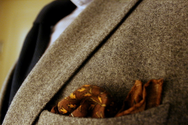 Tietyissä asioissa pyrin suosimaan nimenomaisesti samoja valmistajia mahdollisimman paljon, kuten kenkien osalta Alfred Sargentia, kauluspaidoissa Schoffaa, asusteissa Drake’sia ja laukkujen sekä pienempien nahkatuotteiden osalta nykyisin tanskalaista Mismoa.