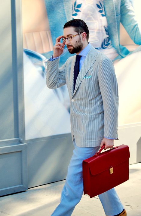 Vakiokirjanmerkkini Suitorialin yksi pääylläpitäjä on nimimerkki Paolo, joka raportoi sivustolla italialaisten räätäleiden ja muiden vaatealan mestareiden tarjonnasta ympäri Eurooppaa matkatessaan. Helmikuussa 2010 syntynsä saanut sivusto on päivittynyt sadoilla valokuvilla, jotka tuovat – sanaa myöden – lisävaloa italialaisten vaatevalmistajien maailmasta. Hyvin tarkkojen yksityiskohtien valikoiminen, kankaiden painojen sekä kudontojen pohdiskelu ja yleinen kiinnostavuus vakuuttivat minut: tähän veijariin on syytä tutustua.