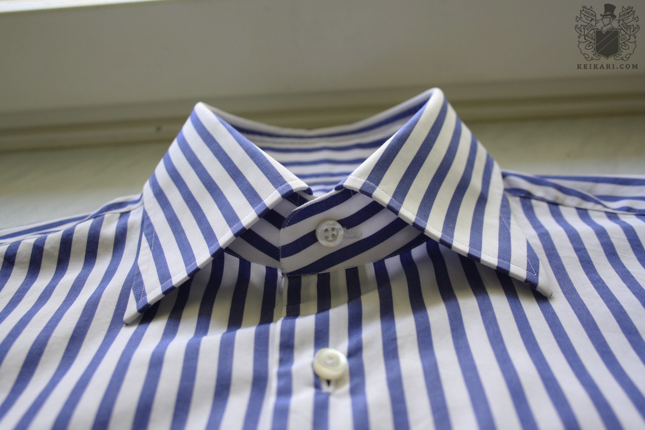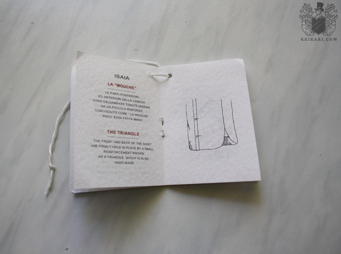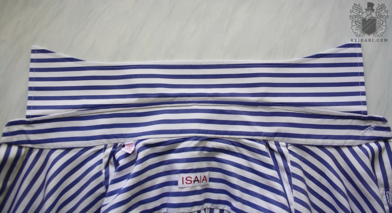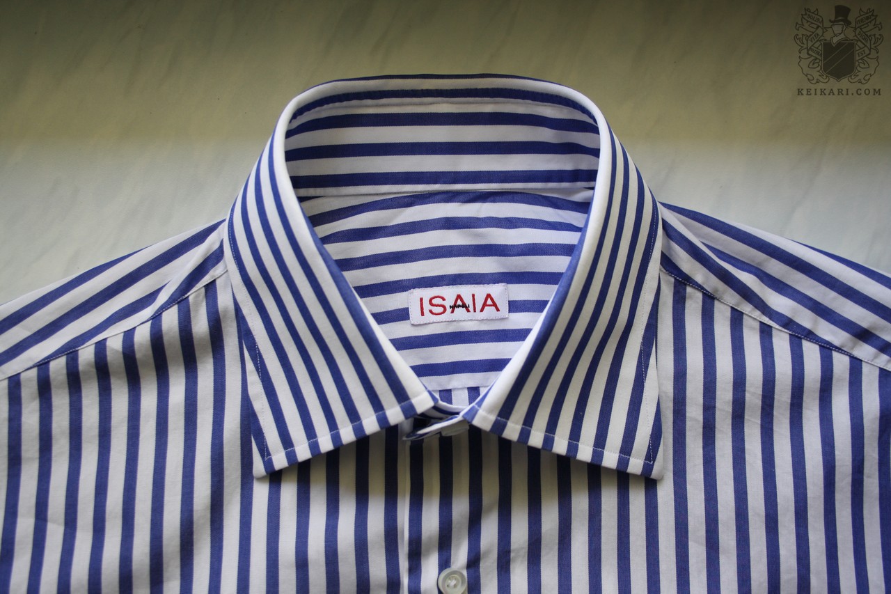 Isaia kuuluu tunnetusti tuhlailevaa käsityötä tarjoavien italialaisten vaatemestareiden joukkoon. Borrellin, Kitonin, Attolinin ja muiden kymmenien napolilaisten tavoin tehdas tarjoaa myös käsintehtyjä kauluspaitoja, joten pakkohan valmistaja oli ottaa osaksi tarkastelua.