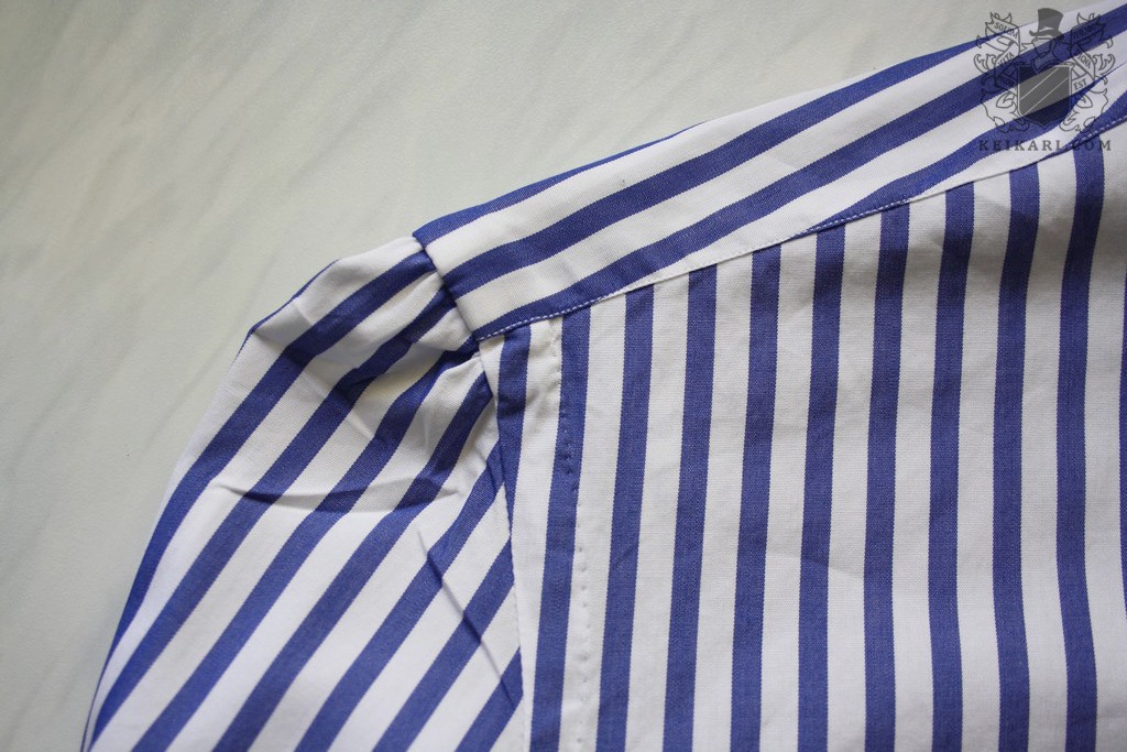 Ompeleet napinrei’issä sekä hihoissa ovat siistejä ja tiuhoja, mutta parin pesun jälkeen yksi napeista on liki irti. Samaten ihmetyttää Isaian viimeistely: käsintehdyssä kauluspaidassa olettaisi kankaan kuvioiden olevan tasattu, mutta näin on ainoastaan ranteen nappilistan kohdalla. Hartioiden kohdalla hihojen liitoskohdassa raidat sojottavat eri suuntiin, joten hämmästelen nappilistojen kanssa nähtyä vaivaa, jota ei ole toistettu. Samat ongelmat toistuivat toisessa valmistajan raitapaidassa. Koska Isaia pyytää euroopassa kauluspaidoistaan noin 200 euroa, asiakkaan tulisi saada pikkutarkkaa viimeistelyä. Tämä ei toteudu, vaikka yritys on kova. Jos nämä muutama harmipuolta saataisiin korjattua, Isaian kauluspaidat olisivat ilman muuta hintansa arvoisia.