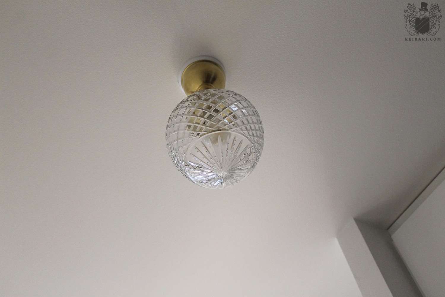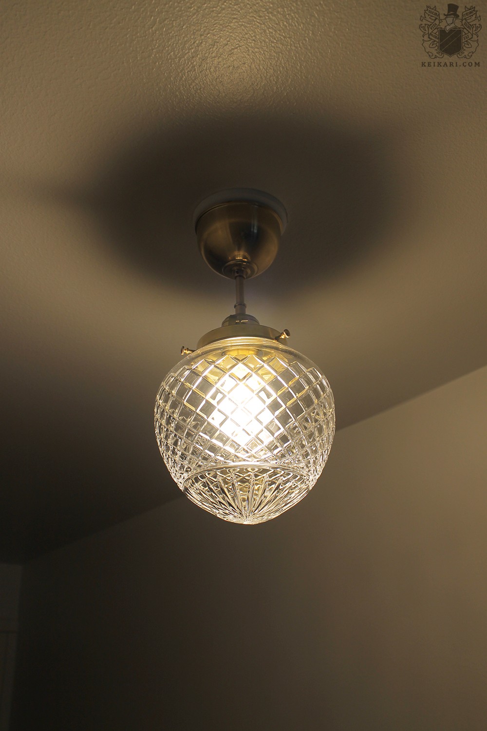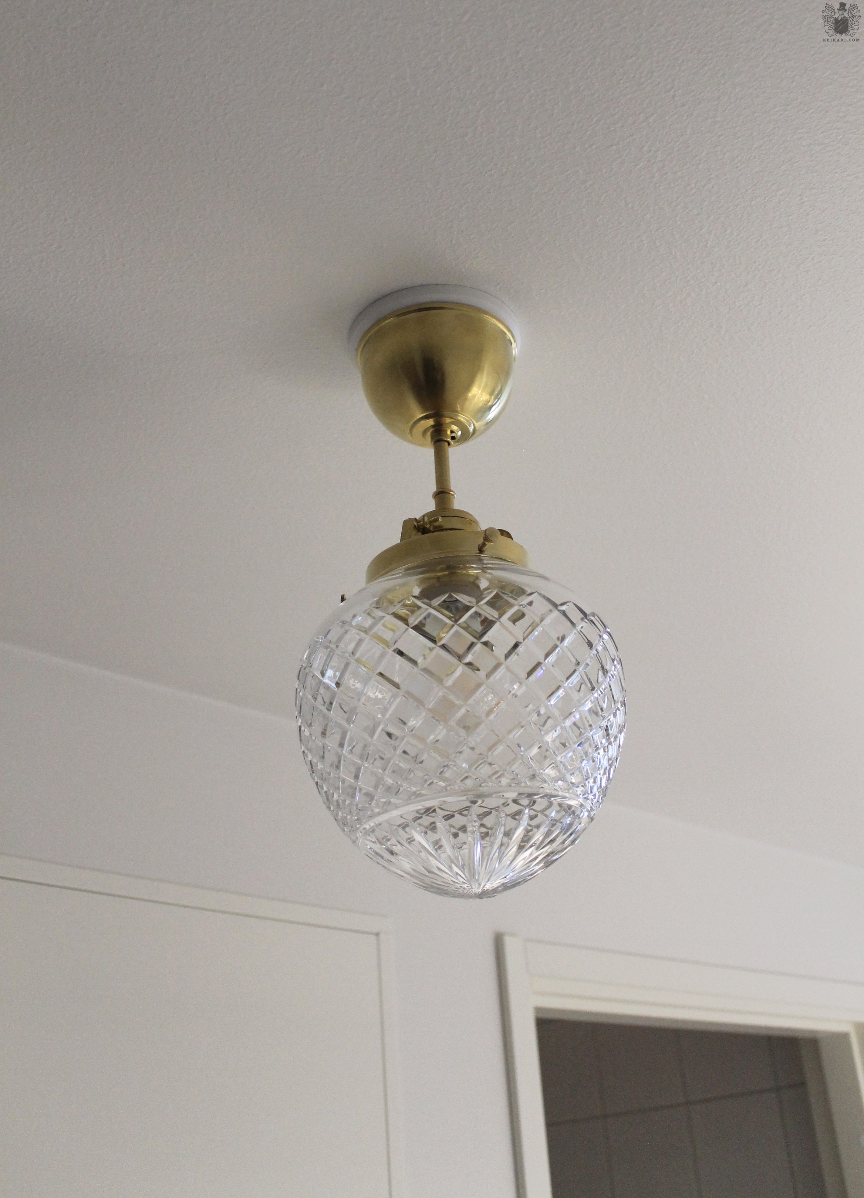 Esimerkkivalaisin on Karlskronan lampputehtaan pisaran muotoinen plafondi, jonka kuvussa on hiottu koristekuvio. Meillä mallia tarjoaa Klassinen Kylpyhuone, joka on yksi harvoista Karlskronan tehtaan jälleenmyyjistä Suomessa.