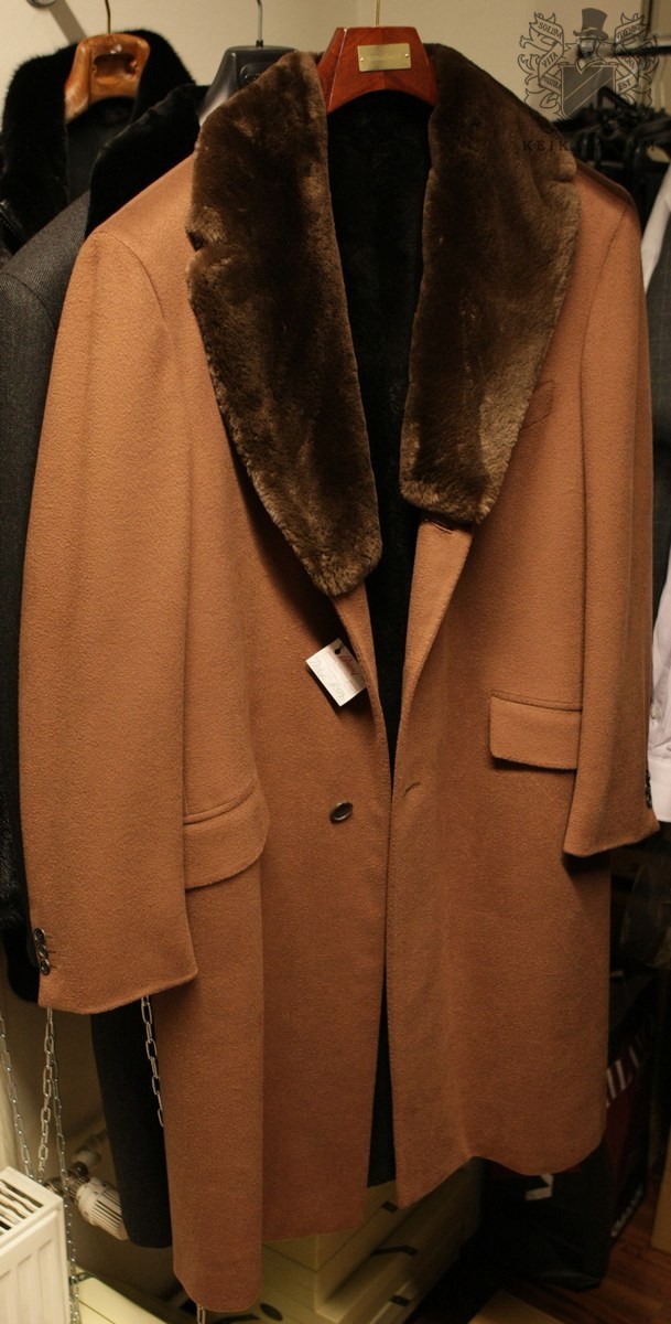 Korkealaatuisin tällä hetkellä liikkeessä oleva tuote: Brionin käsintehty turkiskauluksinen päällystakki, jossa irrotettava turkisvuori.