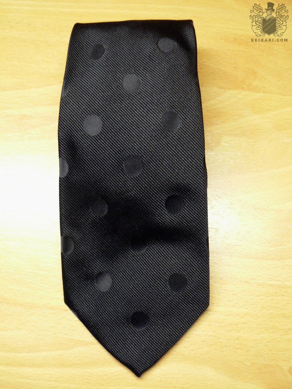 Kuvaesimerkkinä Turnbull&Asserin solmio, joka todistaa ettei yksivärisen mustan solmion tarvitse olla persoonaton. Klassinen pallokuvio koristaa muutoin synkkää olemusta.