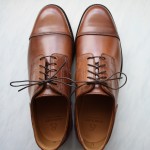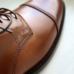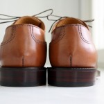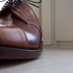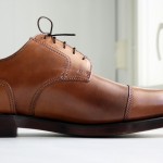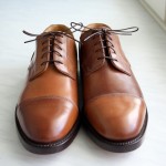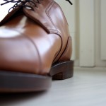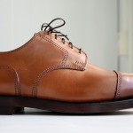 Päivän parina juuri sopivanlaista single malt -viskiä: Horweenin valmistamaa whisky-sävyistä shell cordovan -nahkaa Alfred Sargentin muotoilemissa derby-jalkineissa. Lesti 99, tuplanahkapohja, pyöreä kärki ja sopivaa kontrastia tuova keskiruskea reunosväri.