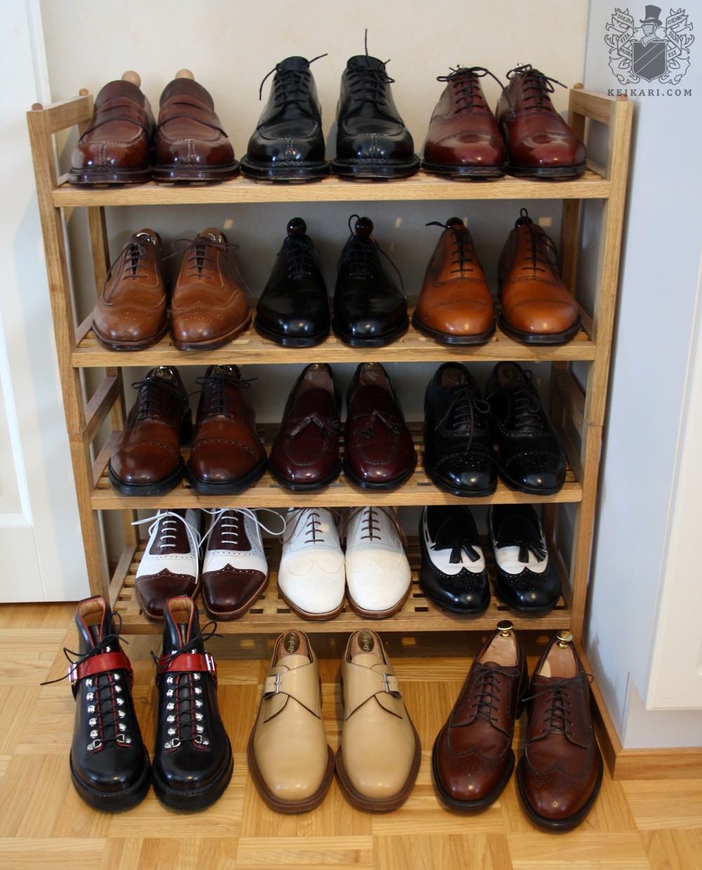 Tusinoittain pareja on käsien läpi kulkenut, mutta vain pieni osa jäänyt kokoelmaan asti pidettäväksi. Esillä ylläpitäjän tämänhetkinen kokoelma, joka täydentyy satunnaisesti muutamilla valikoiduilla jalkineilla. Vakiolukijat tunnistavat valtaosan rekin pareista aiemmista Keikarin artikkeleista, muutamasta on luvassa esittely aikanaan.