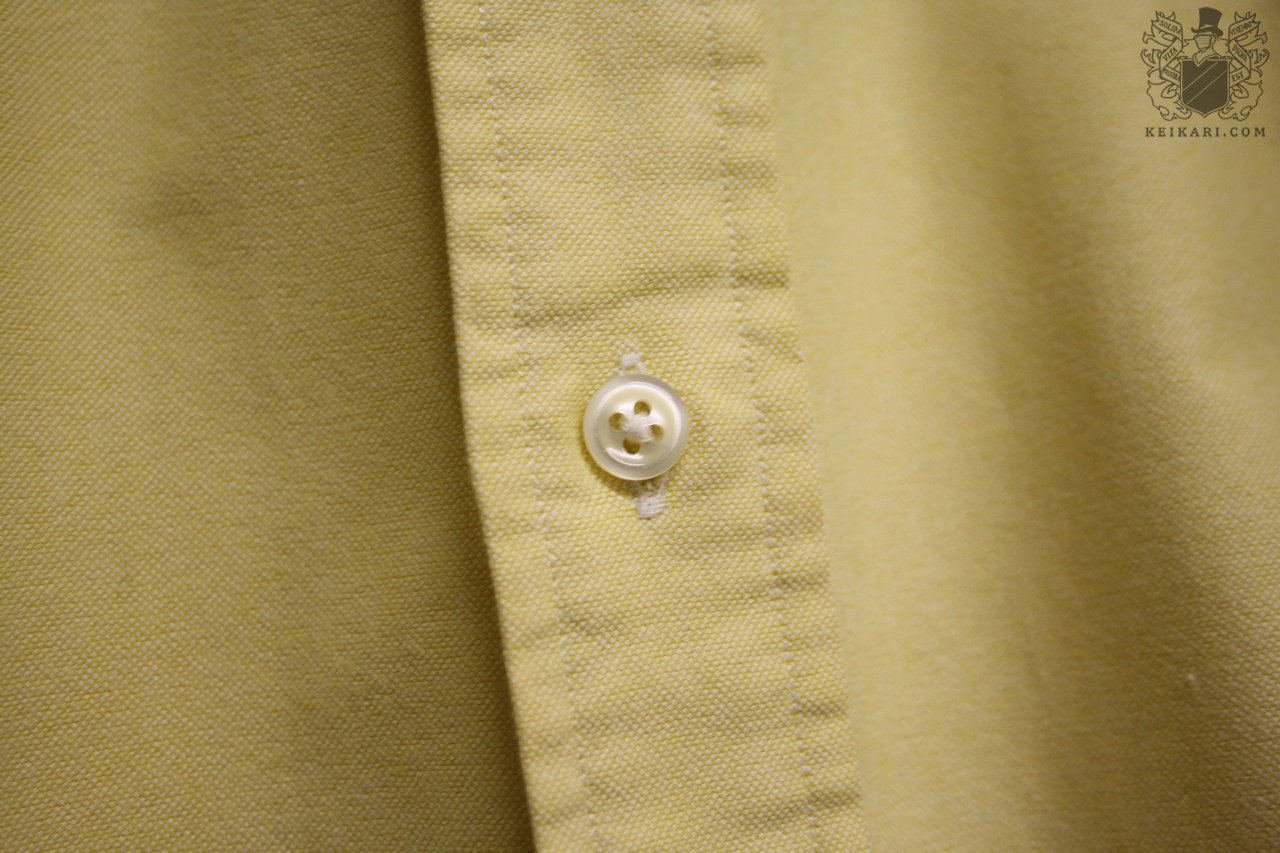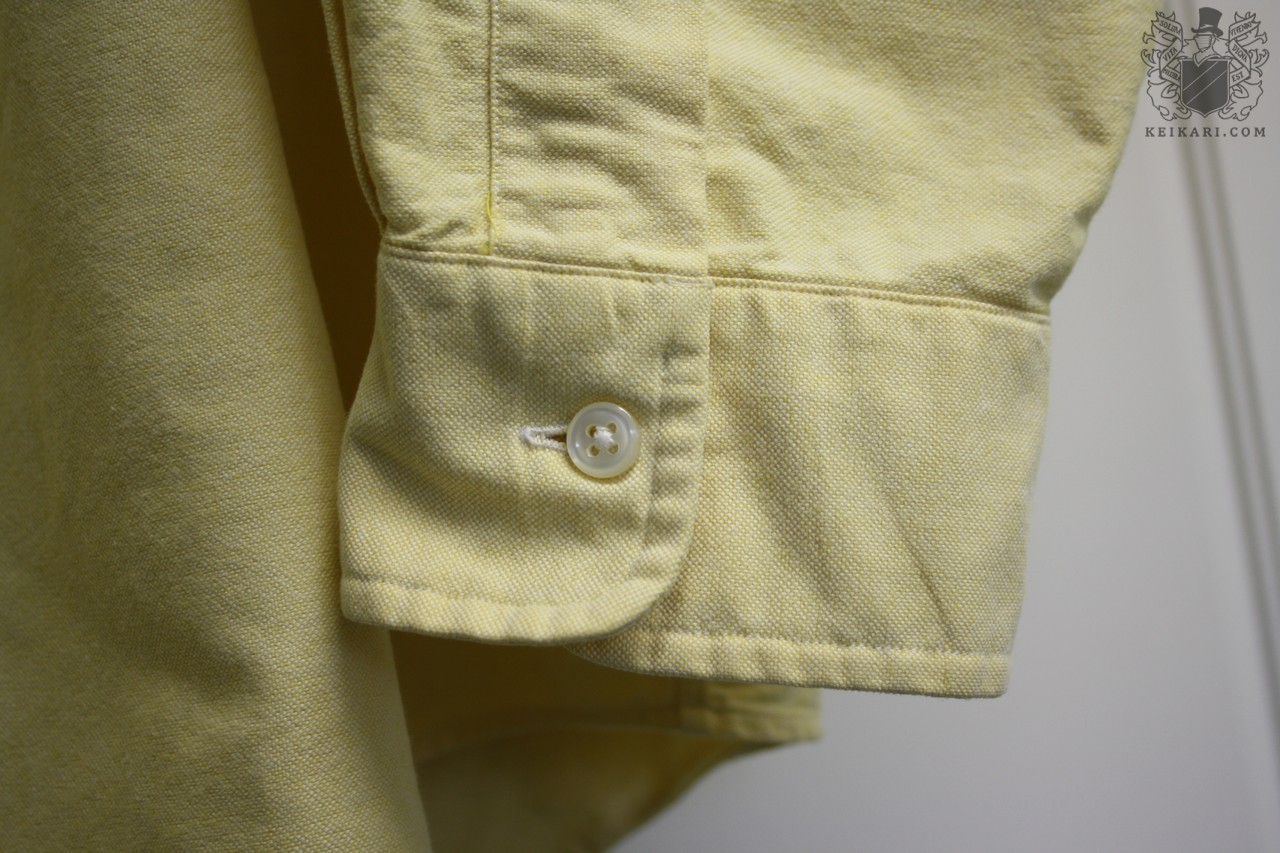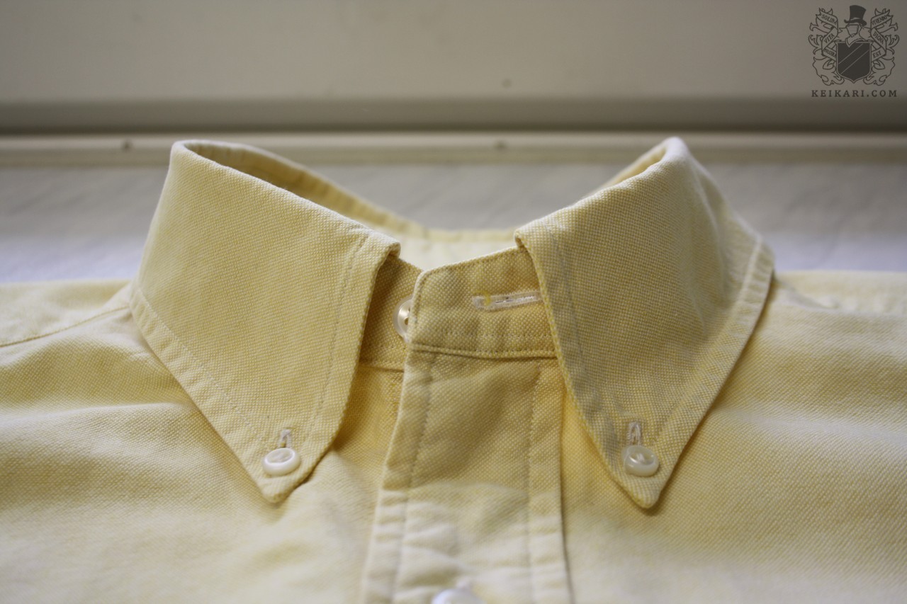 Esimerkkipaita on RL:n malli Yarmouth, nappikauluspaita oxford-kankaalla, väljällä leikkauksella ja kaulusmitoituksella. Ensimmäisenä paidasta huomaa painon: valmistajan käyttämä oxford-kangas on arviolta 180-grammaista ja selvästi tavallista paitakangasta paksumpaa. Tämän ansiosta paita laskeutuu erinomaisesti, kestää käyttöä vuosikaudet, ei juuri rypisty ja näyttää rennolta. Ompeleet ovat hyvin tiheät, suorat ja siistit kauttaaltaan. Napit ovat tylsää muovia ja heikosti ommeltu, mutta napinreiät ovat jämäkät. Nappilista on leveä ja jäykkä, saumat siistit. RL:n logo on koneellisesti ommelluksi erittäin siisti ja yksityiskohtainen. Valmistajan erikoisuus on tavallista lyhyempi kalvosin, joka ei vetoa minuun. Toinen poikkeava ratkaisu on kalvosimen nappilistan sivuttain ommeltu pikkunappi. Paidankaulus on rakenteeton ja siististi rullaava, mutta sen kärjet ovat onnettoman lyhyet. Nappikauluspaidan suurin juju on kauniisti kaartuvassa kauluksessa, joka vaatii tavallista pidemmät kärjet ja oikean napituskohdan.
