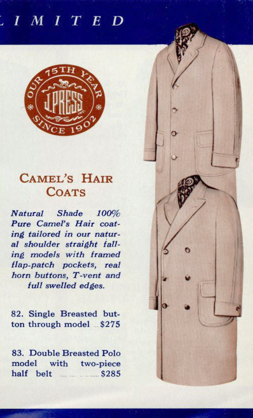 Vuosien varrella takki muuttui nykyiseen vakiomuotoonsa, jossa on monta yksityiskohtaa: paikkataskut, leveät kaulukset, tamppi selässä, pehmeä hartialinja, kääntöhihat, suuret helmiäisnapit ja polvipituus. Väri on aina vaalea. Näiden muuttujien yhdistelmä oli hyvin rento villakangastakki, joka varattiin aikalaisten parissa urheiluun. Näyttävä malli ja mukavuus tekivät siitä nopeasti suositun myös poolokentän ulkopuolella. Alkuperäinen materiaali oli täyttä kamelinkarvaa, joka on erikoinen ja mainio raaka-aine.
