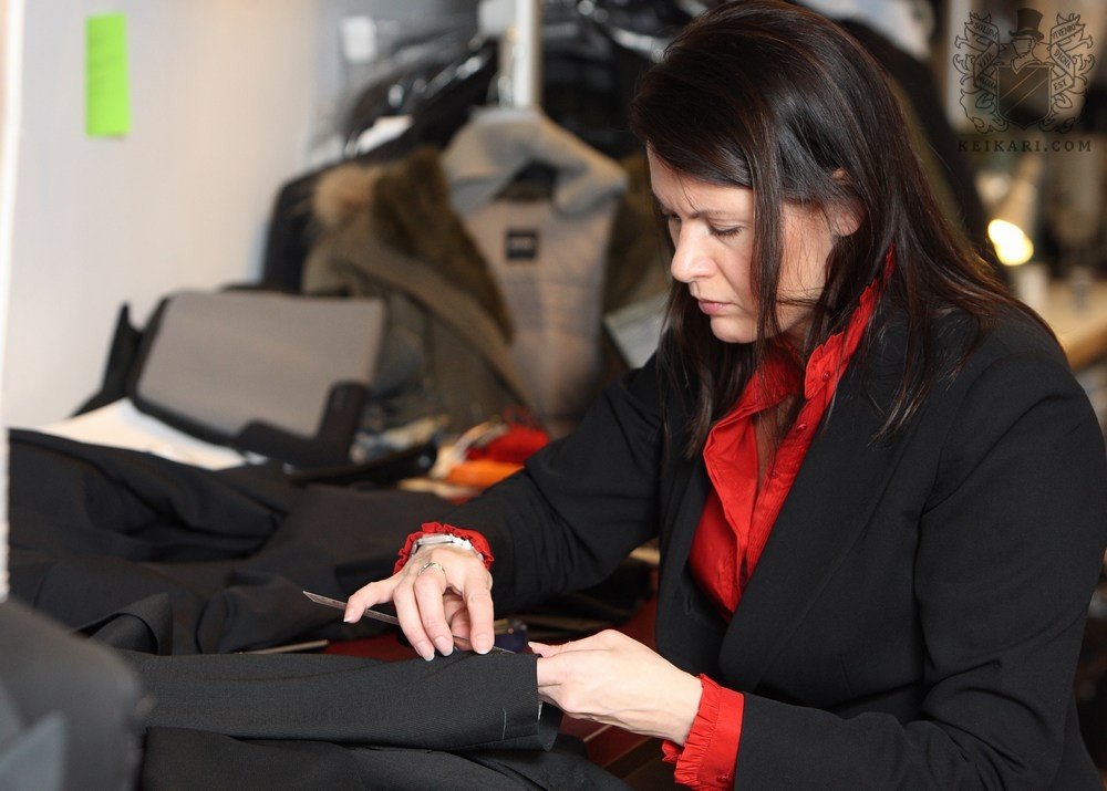Sonja Raassina, 38, valmistui vaatturiksi 12 vuotta sitten. Hän toimi parturi-kampaajana, kunnes lama vei työpaikan ja jätti Sonjan tyhjän päälle. Koska hänen isoisänsä oli tyyliniekka ja äitinsä ompeli paljon, vaatteet ovat aina kiinnostaneet Sonjaa. Hän on ollut vaatturimestari Matti Hampaalan opissa, tehnyt yhteistyötä Janne Renvallin kanssa ja ollut harjoittelussa muun muassa teatterikorkeakoulussa. Kaupunginteatterissa hän toimi kaksi vuotta ja kansallisopperassa yhden kauden ajan. Hän tuskastui jatkuvaan pätkätyösumaan, ja ajatus oman liikkeen perustamisesta ehti muhia jo ennen kuin hän kuuli Armanin olevan samoissa aikeissa. Tietotaitojen yhdistäminen oli luonnollinen päätös. PukuStudio on ollut pystyssä nyt liki kolme vuotta. Vaikka molemmat räätälit osaavat sekä miesten että naisten vaatteiden valmistamisen, Sonja palvelee miltei poikkeuksetta naisasiakkaita ja Arman miehiä. Sonjan mukaan asiakkaan tulisi valita PukuStudio mikäli hän haluaa yksilöllistä tyyliä ja erinomaista palvelua. Koska hyvin harva liike tarjoaa naisille mittajakkuja sekä käsintehtyjä tilausjakkuja, PukuStudio on erinomainen valinta mikäli näitä mielii. Erikoisin Sonjalta tilattu vaate on ollut sähkönsininen pliseerattu morsiuspuku.