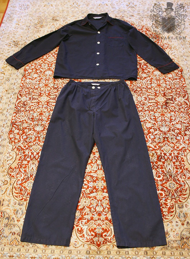 Klassisen pyjaman yläosa muistuttaa kauluspaitaa, mutta sen kaulus on pehmeä ja yleensä pyöristetty, hihat pitkät ja housujen lahkeet samaten. Miehustan keskellä kulkee usein nappilista, jonka ylle ommellut napit kiinnittävät paidan. Leikkaus on väljä mukavaa nukkumista varten ja yleinen, pieni kontrastireunus tuo lisäväriä. Samoin kolme paidantaskua on yleinen ratkaisu, kun taas housujen alkuperäinen nyörikiinnitys on korvattu kumisella joustonauhalla. Materiaaleista kudotut puuvillaiset paitakankaat ovat yleisimpiä, sillä ne kestävät hyvin ja ovat iholle mieluisia. Vaikka silkki on ollut yleinen ammoin, sen kuivapesu on rasite, eikä materiaali kestä käyttöä kauan. Kesällä pellava on ilmavin, talvella flanelli taas lämpimin, ja kangasta vaihtelemalla pyjamaa voi muokata loputtomiin. Tyylikkäämpää asua nukkumiseen ei ole vielä keksitty, joten pyjama löytyy yhä miehen harteilta.