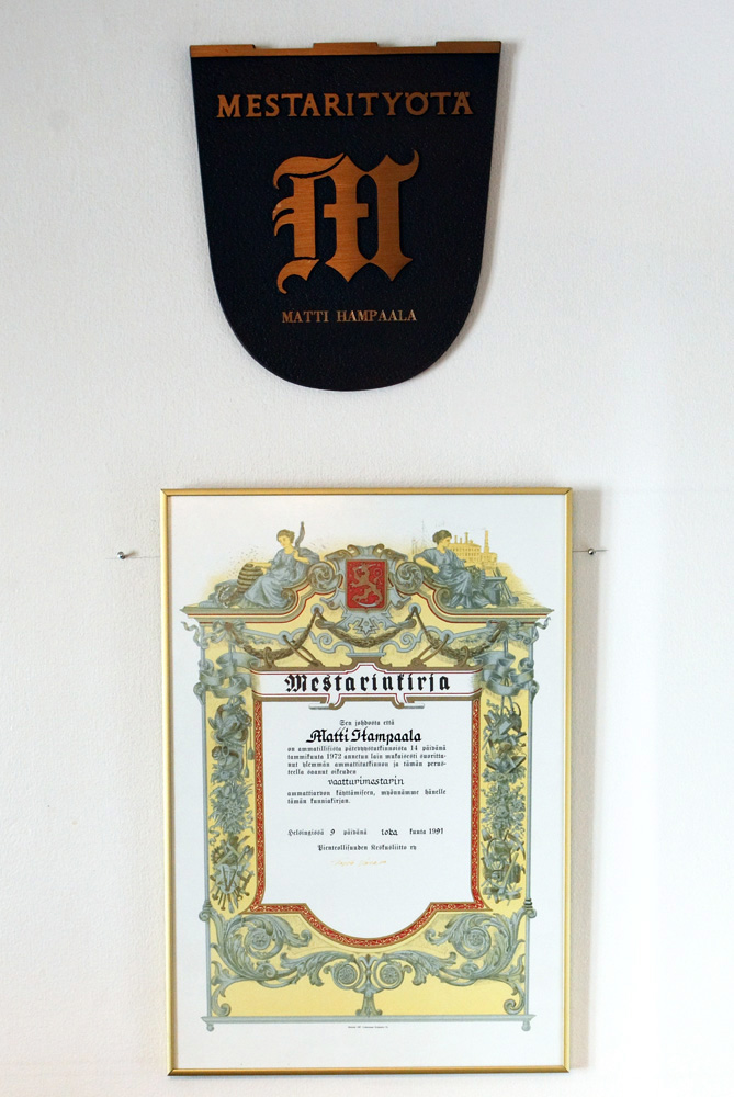 Matti Hampaala, 50, valmistui ammattikoulusta vaatturiksi vuonna 1980 ja tämän jälkeen hän siirtyi saamaan lisäoppia räätäliliikkeeseen. Alalle hän ajautui sukuvikana: sekä isoisä että isoisän isä olivat räätälimestareita, ja Hampaalan äiti puolestaan on käsityön opettaja. Omaa liikettään räätälimestari on pyörittänyt vuodesta -92, vaatteita hän on valmistanut jo kolmen vuosikymmenen ajan. “Mitään erityistä house style -leikkausta Hampaalalla ei ole, sillä liike valmistaa sitä, mitä tilataan.”