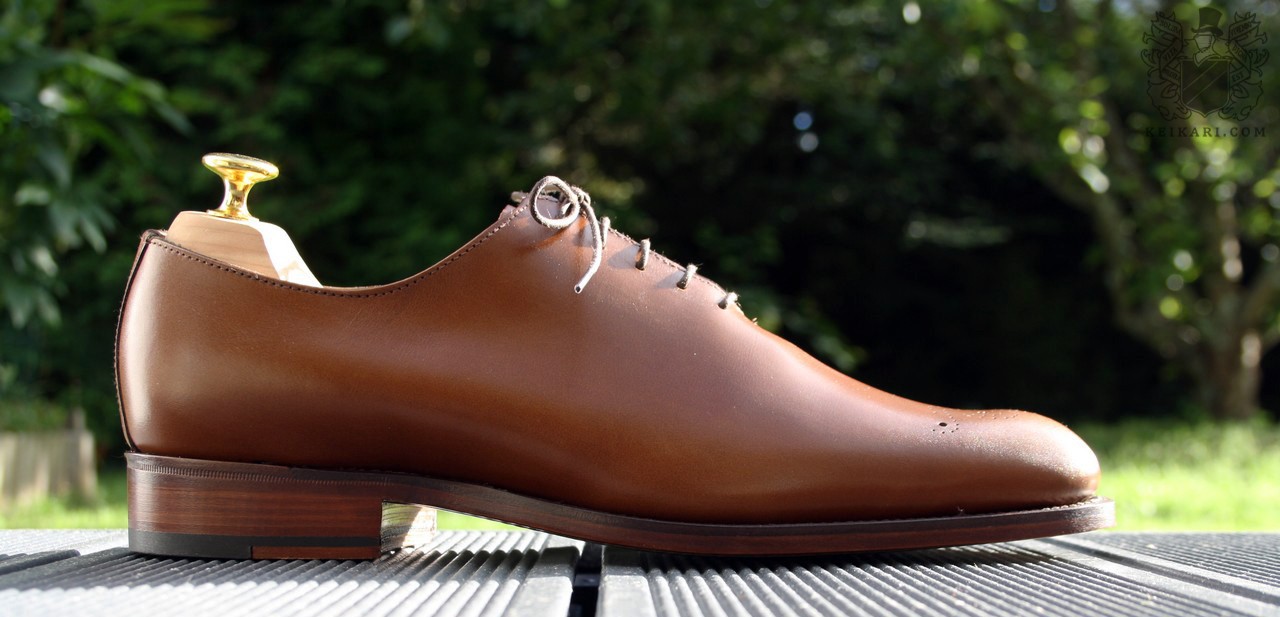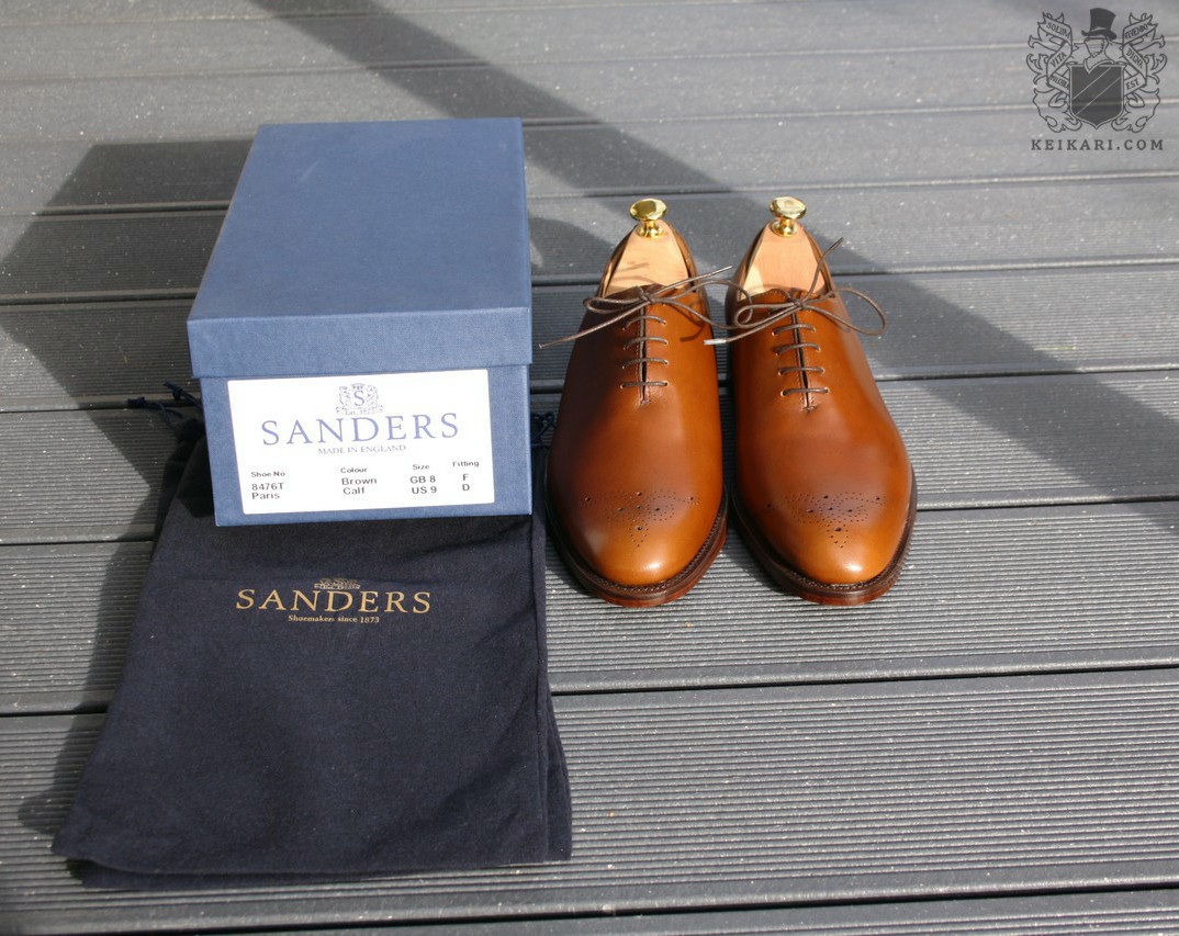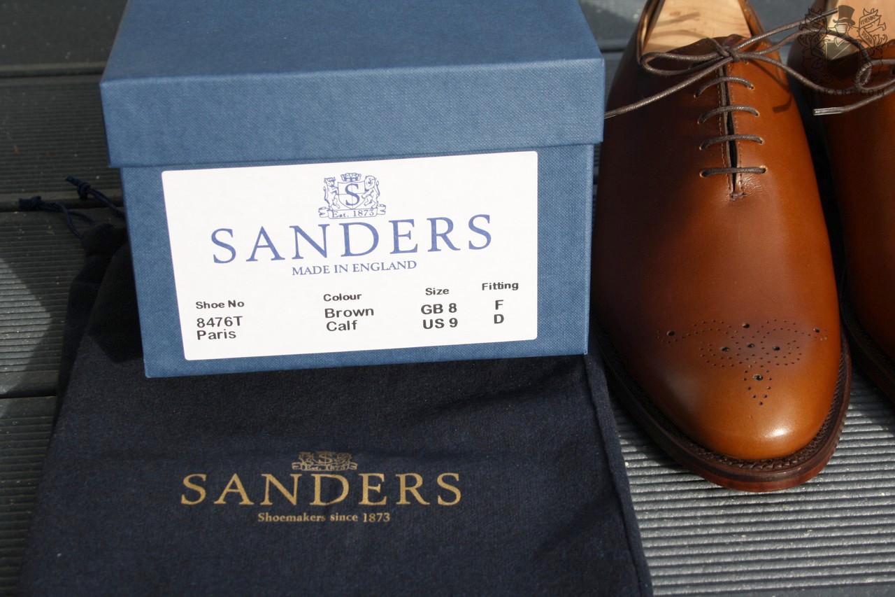 Northamptonin Sanders on kovin vaatimatonta julkisivua pitävä tehdas. Valmistaja on selvinnyt vuodesta 1873 aina nykypäiviin saakka, mutta valmistajalla ei ole kummoista profiilia verkon tyylisivustoilla, -blogeissa tai -foorumeilla. Tehdas valmistaa jalkineita kolmessa mallistossa: Equestrian tarjoaa ratsastussaappaita, Uniform tarjoaa pareja Iso-Britannian hovin sekä armeijan tarpeisiin – ja sitten on vielä muut parit. Näiden joukosta löytyy juhlakenkiä, pukukenkiä sekä vapaa-ajan pareja. Todennäköisesti tunnetuimmat mallit ovat Sandersin Casual-jalkineita, jotka erottuvat värikkään päällisen ansiosta ja muistuttavat muotokieleltään Tricker’sin pareja. Tehtaan mallit olivat minulle arvoitus tähän vuoteen mennessä, joten ilman muuta yksi pari tuli hankkia arviointiin. Korkeinta Sandersin laatua edustaa Diplomat-sarja, josta esimerkkipari on peräisin. Kyseessä on malli Paris, brogue-koristeltu wholecut-tyyppinen pukukenkä.