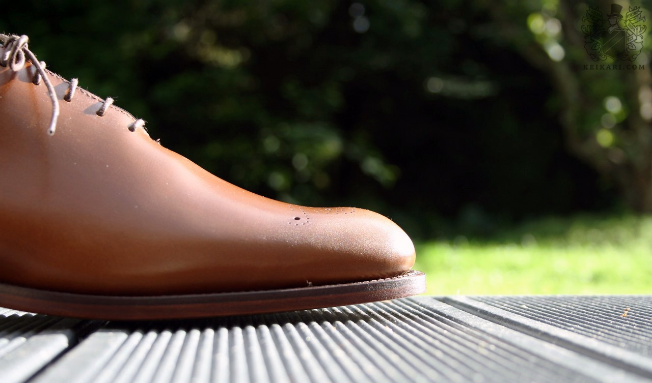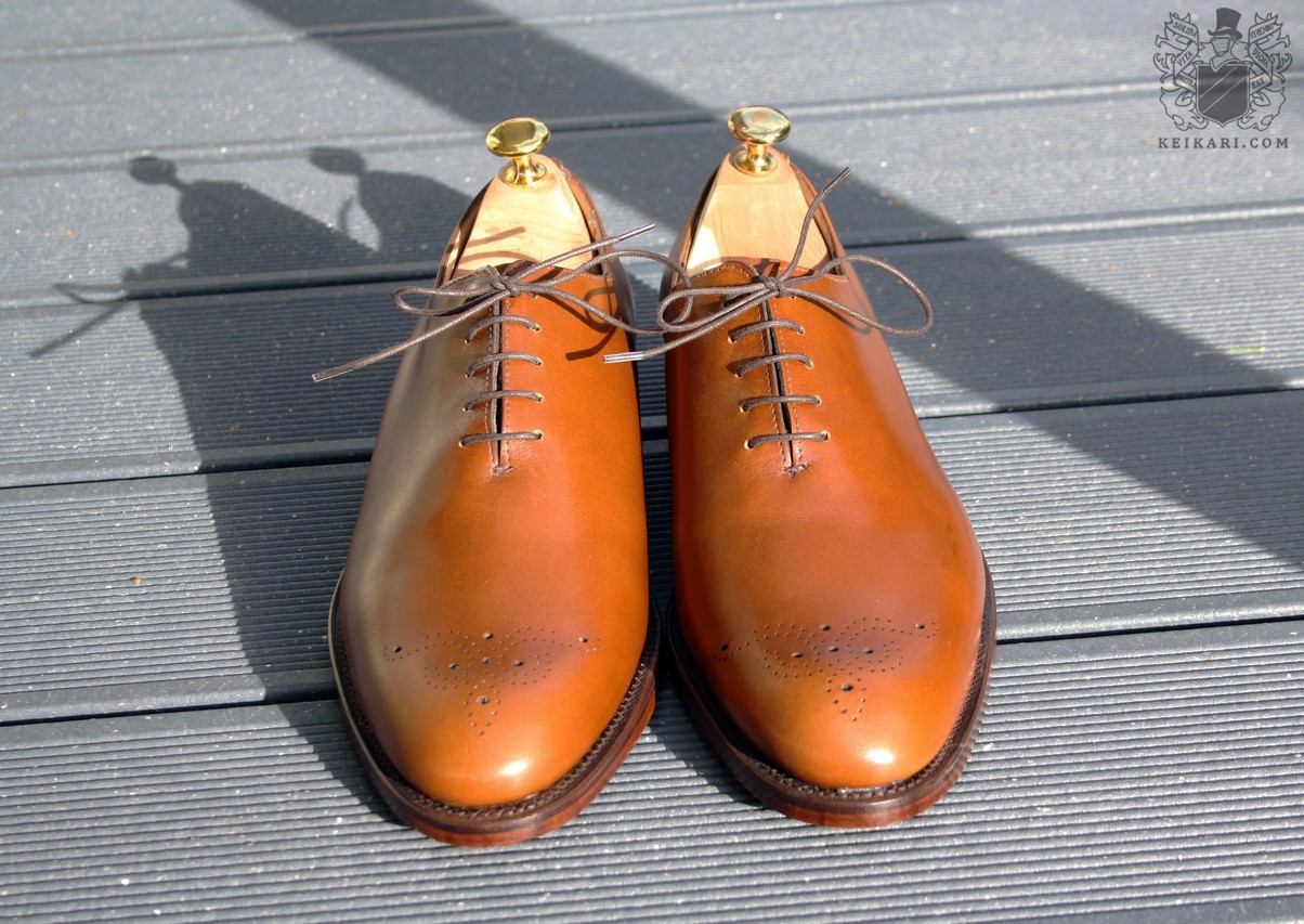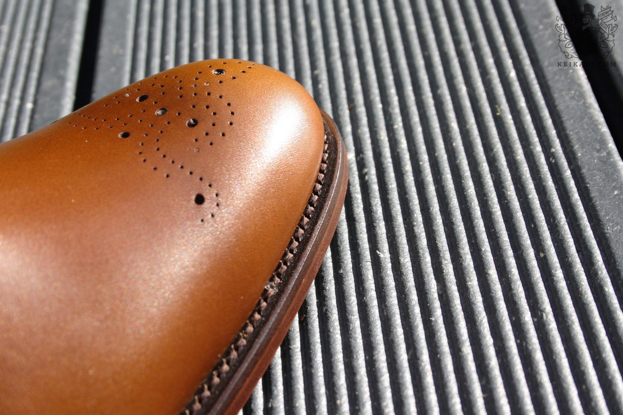 Kuten kaikissa wholecut-jalkineissa, saumojen sekä koristeiden puuttuessa lestin muoto ja päällisnahka nousevat pääosaan. Nahka on erinomaista, lesti jättää toivomisen varaa. Tämä ei tietenkään liki kahden metrin korkeudelta paljon näy, mutta popomaanikkoa asia vaivaa. Harmia tuo myös ommel, jolla kieli on kiinnitetty vuorinahkaan: se on selvästi vedetty liian kireälle, jonka vuoksi päällinen on rypistynyt ompeleen ympärillä. Oikean parin brogue-kuvio ei ole mennyt aivan kokonaan läpi ja vasemmassa parissa se on vinossa.