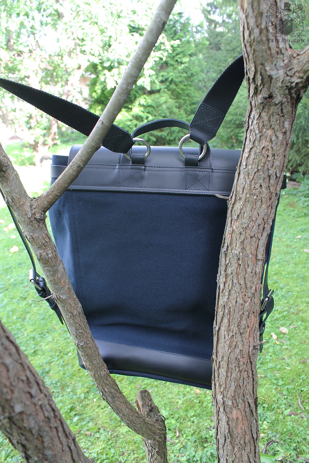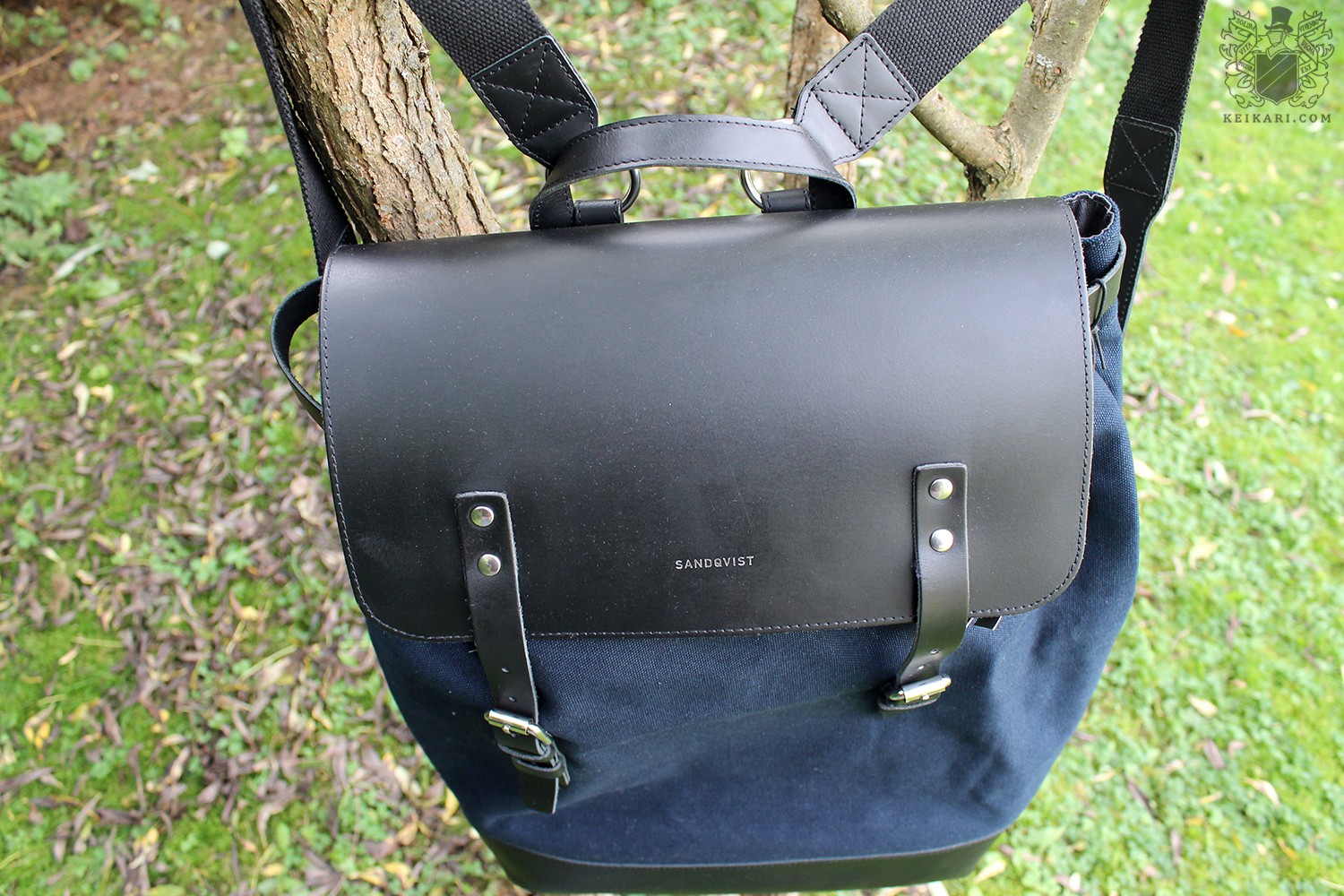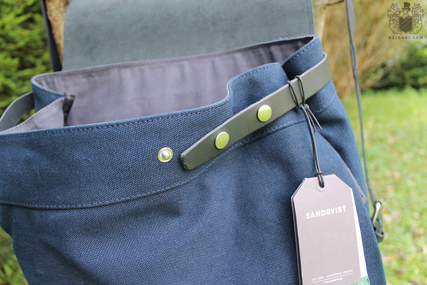 Tällä kerralla Keikarin tarkastelussa on Sandqvistin reppumalli Hege, joka saapui Mukama-verkkokaupan näytteenä. Sen nahka on pinnoitettua ja kanvaasi paksuinta, jota valmistaja käyttää. Mallin muotoilu on hyvin pelkistetty, sillä siinä on vain läppä repun suun yllä, eikä mitään erottuvaa tai silmiinpistävää. Vaikka mallissa ei ole pieniä taskuja ulkopuolella, siinä on nokkelasti piilotettu sivutasku oikean sivusauman sisällä. Kuten toivoa sopii, repun pohjan sisällä tuntuu vahvike. Sen ansiosta kangas ei veny muodottomaksi tai rikki, vaikka kuormaa olisi enemmän. Repun suulla on nepparit, joiden avulla sen kokoa voi säätää. Tarvittaessa suu siis laajenee, jos sisään haluaa mahduttaa vaikkapa viltin. Kantohihnat kiinnittyvät renkaisiin, joten ne liikkuvat hyvin vapaasti selän mukana. Hihnoissa ei ole pehmusteita, vain kerros kanvaasia hoitaa homman. Kantokahva on siro ja pyöreä.