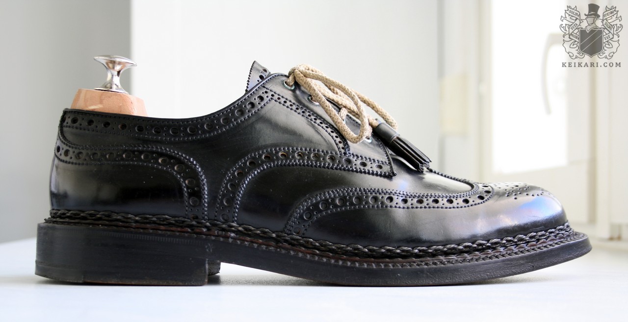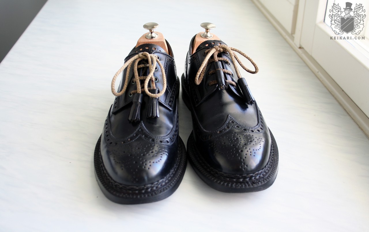 Esimerkkiparina on StefanoBin tuplanahkapohjalla, leveällä reunoksella ja Norvegese-pohjauksella luotu vapaa-ajan brogue-monsteri. Päällinen on mustaa shell cordovania, kärki hieman kaartuvan pyöreä, nauharenkaat terästä ja nauhat jostain suunnittelun oikusta vaaleat sekä tupsupäiset. Nämä nauhat menivät ensimmäisenä vaihtoon, tilalle valikoitui paksu ja musta perusnauha. Tupsut päätyvät mustan wholecut-mallin nauhojen päähän. Lähin vertailukohta StefanoBin parille ovat unkarilaisen Heinrich Dinkelackerin mallit, mutta italialainen valmistaja vie voiton selvästi tyköistuvammilla lesteillään. Laadun puolesta hävettävää ei myöskään ole. Jostakin oudosta syystä valmistajan verkkosivusto on ollut “työn alla” useiden kuukausien ajan, mutta pikainen haku paljastaa useita malleja StefanoBin verstaalta. Kokonaisuutena valmistajaa voi suositella italialaisia erikoisuuksia arvostavalle tai jotakin classic-with-a-twist -henkistä hakevalle.