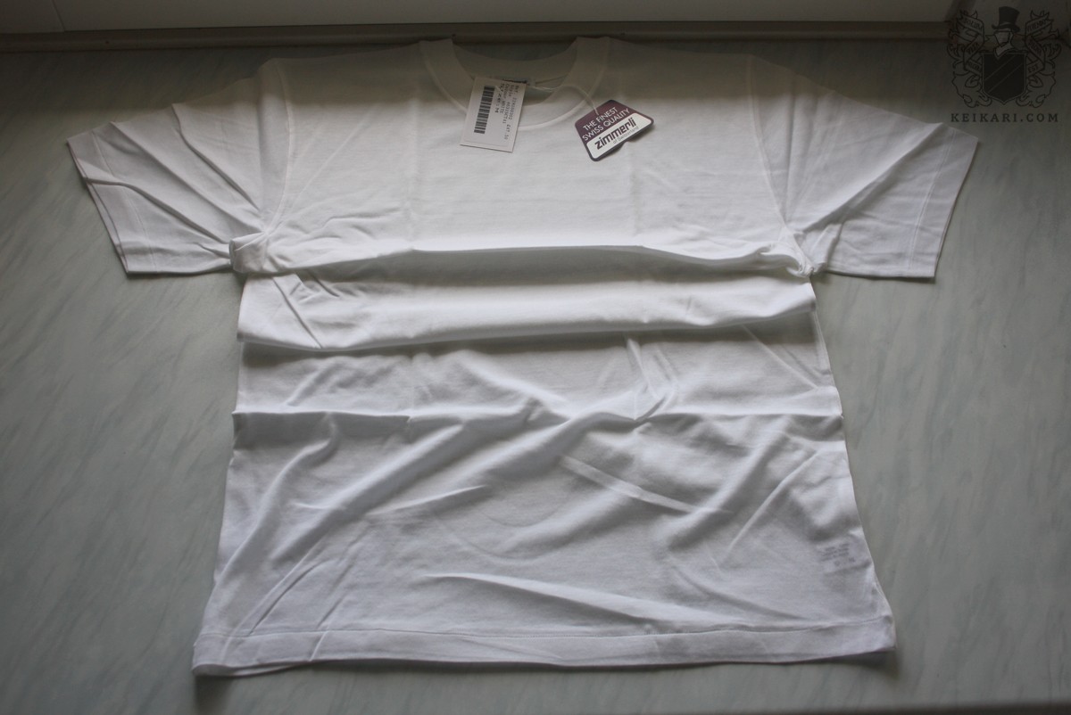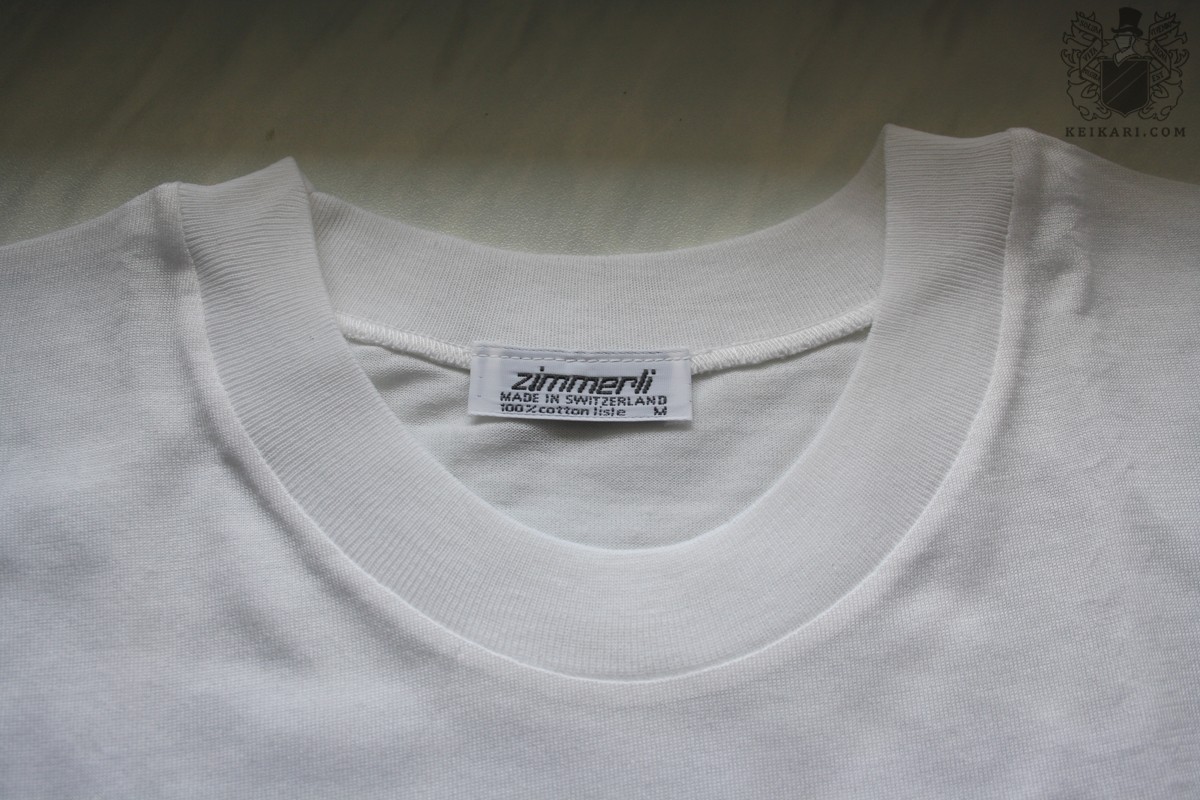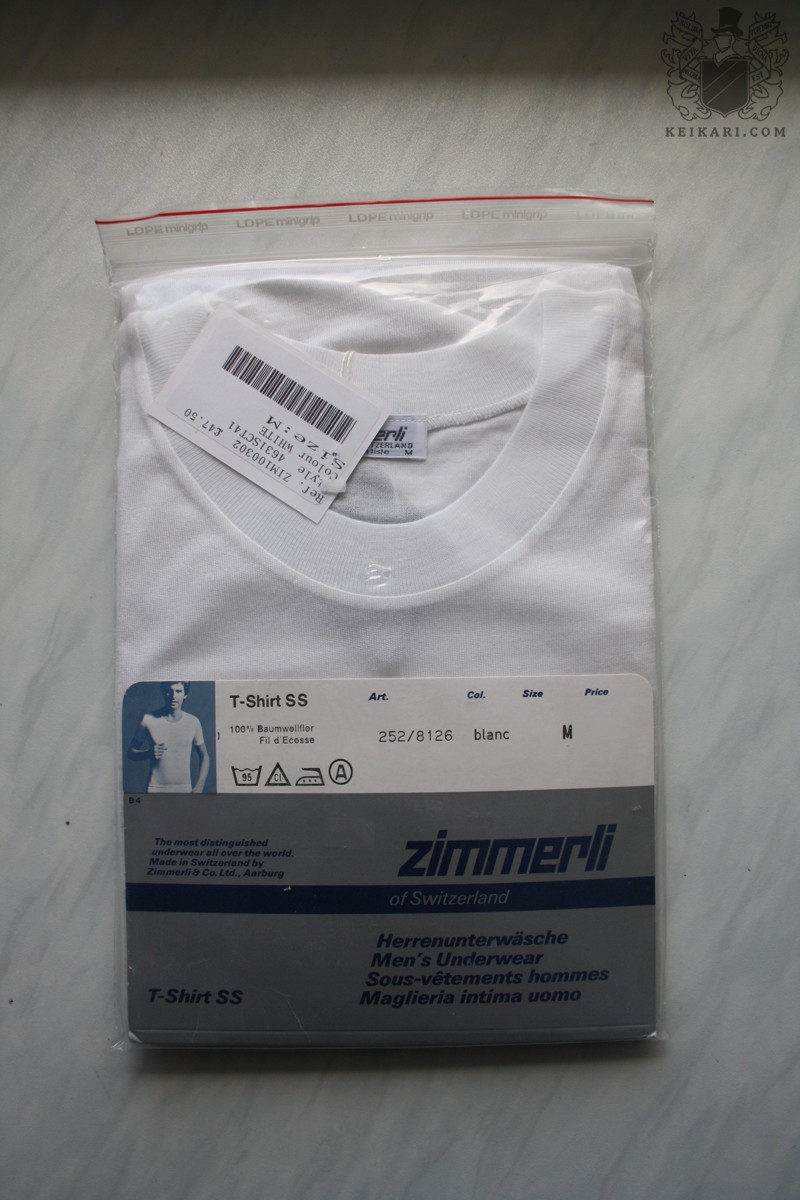 Zimmerli kutoo hankkimansa egyptiläisen mako-puuvillan vanhanaikaisilla koneilla, joiden tuotantonopeus on hidas, mutta laatu sitäkin kovempi. Aluspaita on äärimmäisen kevyt, rypistymistä vastustava ja silkkisen pehmeä. Kaikki saumat ovat pieniä ja huolellisesti taitettuja, kangas erittäin tiuhaa kudosta. Erikoisesti pesulappu ilmoittaa paidan kestävän jopa 95 asteen lämpötilaa. Mitoitus on erittäin tyköistuva, joten mukavuutta hakevan on hyödyllistä valita kokoa suurempi paita. Merssipuuvillainen materiaali joustaa mukailevasti, helma on hieman tavanomaista pidempi. Kaula-aukon reunat ovat erityisen tiuhaa kudosta, joka tuntuu silkiltä kaulalla. Laadullisesti paidat ovat kyllä loistavia.