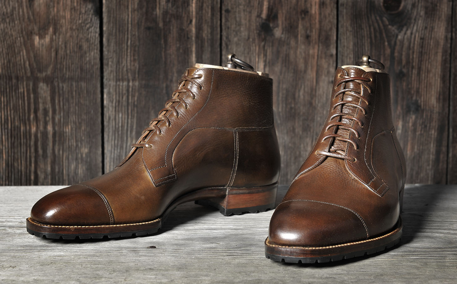 What defines my house style, beside the last shapes and the actual making, is the unique way of making hand-scratched toe plates, my own styles of trees and newly developed construction techniques. For example, the extremely narrow waists and the Freiburgian welt, which is a kind of half blind Norwegian welt. Special and refined details are very important for me.