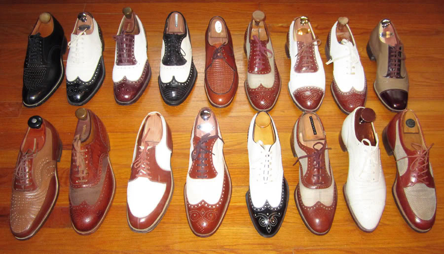 About shoes (the important stuff), I really got into them specifically around 4 years ago. Up until that, I had always enjoyed fine men’s clothing. Probably because my Father loves it as well, and he would take me with him to buy clothes. In the late 1970’s to early 1980’s, we used to shop at a store called “Dimensions” in Philadelphia. What fond memories! In fact, I STILL have a few items my Father bought from there. A 10-pound shearling Bally coat and a custom made Zegna fabric suit. Quality lasts. If you take care of it, it will last a lifetime (or more!).