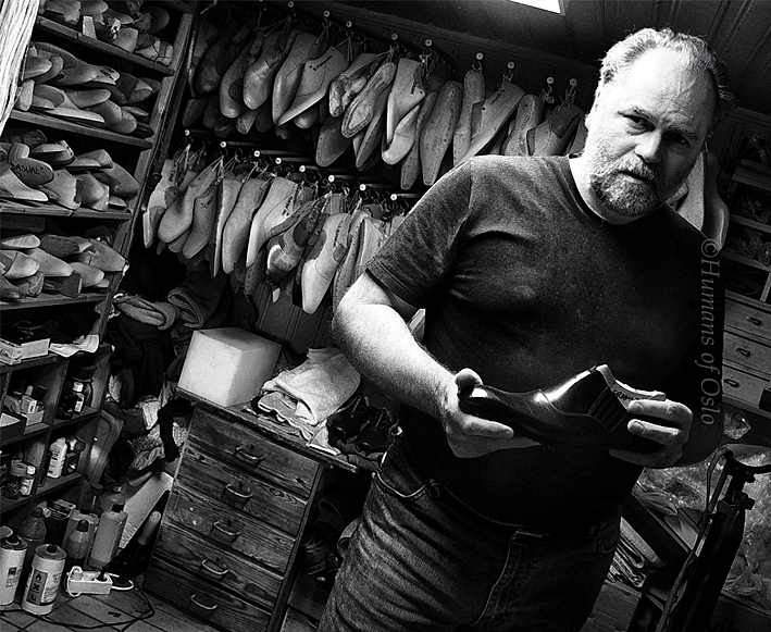 ’52 years of age. Bespoke Shoe and Bootmaker. Lithographer, Art Director, Shoemaker, which includes the crafts Lastmaker, Pattern Cutter, Closer and Maker. I am not married, no children either. [I became interested in shoemaking] at the age of 17, asking the local shoemaker to make me a pair of boots. He excused himself in a way that I understood he was unable to execute the craft. So, I started on the process myself – making all the mistakes possible. But, I started at the bottom, which was absolutely correct! My mother warned me already at the age of 17. Since 1981, I spent 6 years fumbling with leathers and tools, thinking and dreaming…until I went to London and John Lobb in 9, St James’s Street. I ordered a pair of shoes and a pair of trees. In 1992, Jonathan Lobb came to visit me in Oslo, and we have been friends ever since.