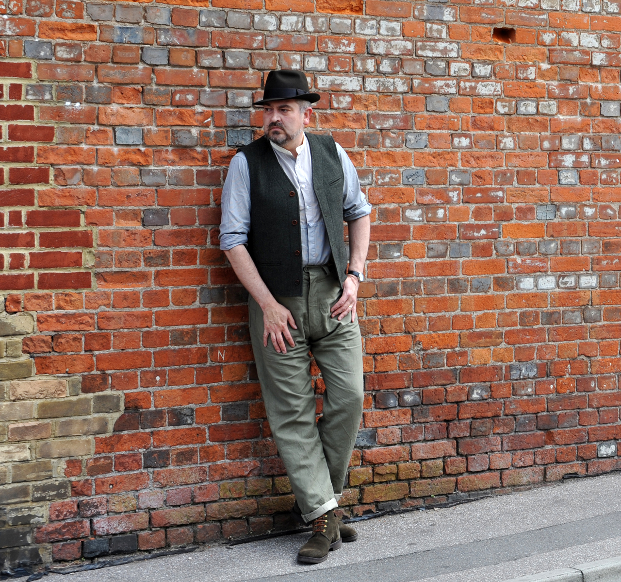 My dress is arguably a Jekyll and Hyde split. Monday to Friday I generally wear a relatively conservative suit and shoes, whilst at the weekends I can experiment more. Wearing a suit isn’t a penance, and does allow a degree of freedom of expression through accessories, particularly hats (a growing passion). In terms of suits I favour a slightly looser more traditional cut than many and find RTW works well enough, although I’ve semi-successfully dabbled with made to measure. I don’t favour any particular suit makers, but generally prefer 3 button to 2 button suits. At some point I might try bespoke, but that’s going to require more investment in time and finances than I can currently spare.