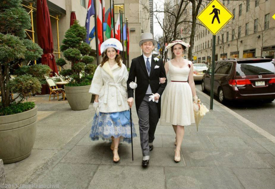 12. and 13. Easter gear with vintage stroller jacket, grey striped pants, spats from Fine and Dandy Shop, grey topper, silver tipped walking stick. Photos: Jane Kratochvil.