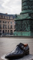I never wear ties, I’m much more in a casual/”chic” mood. There are plenty of good tailors, my favorite being : Marc de Luca, Lorenzo Ciffoneli. In RTW, I like brands such as: APC, Hermès, Edwin, but also Topman. I like mixing very high-quality brands with nice jeans and nice casual. I started [my company] in october 1990. I did not really have a goal when I started, my first aim was to make enough shoes in the month in order to pay my bills! Little by little I realized that there was a possibility to build something bigger. Of course, at the beginnig I was received like a beginner and after a few years people started to see me with different eyes. My other passions are Music (I play the guitar) and painting.