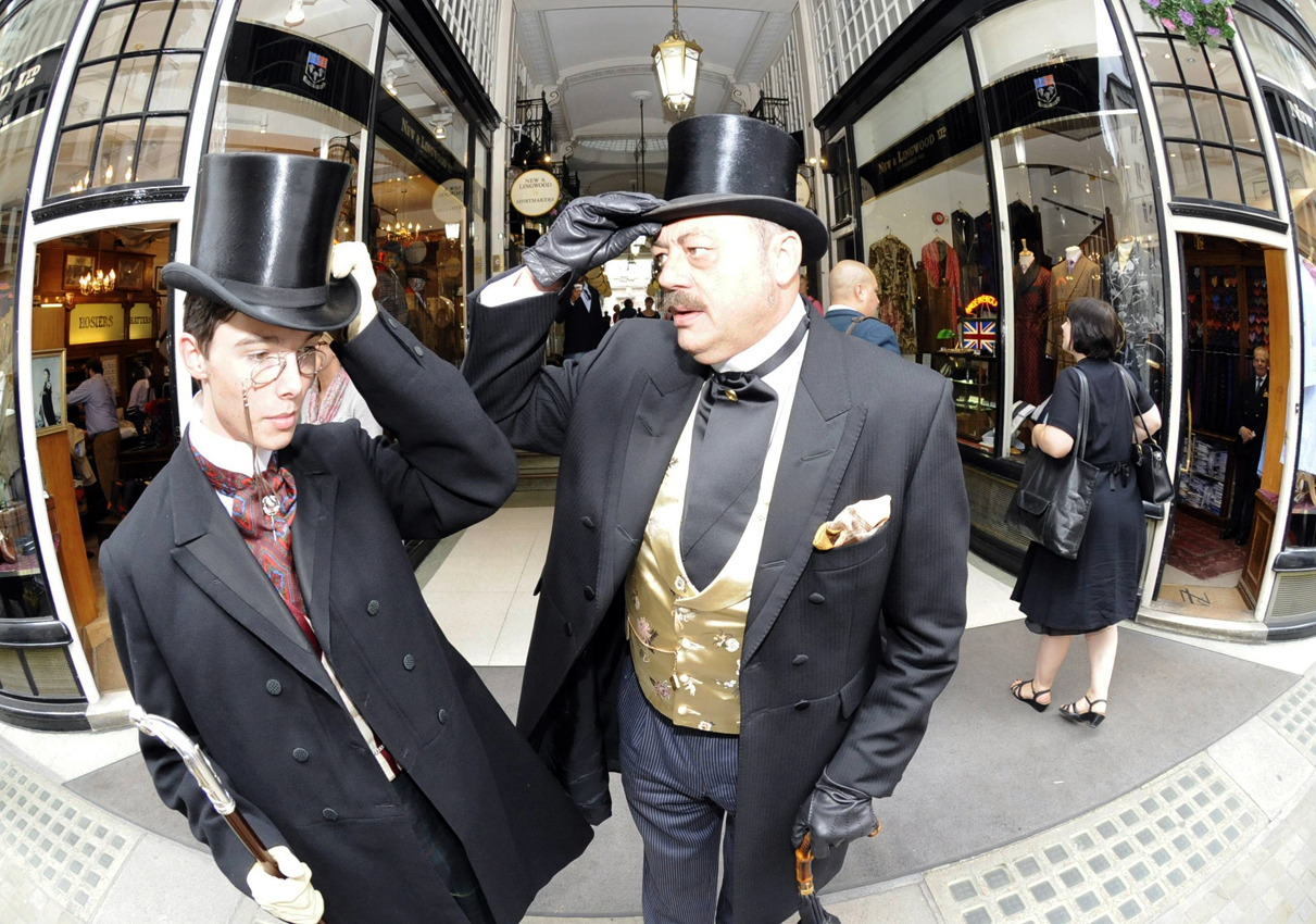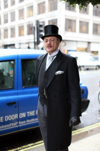 I just really like the design of those Victorian/Edwardian clothes, the flash of the silk facing on the lapels, the silk buttons, the lovely waistcoats of Edwardiana, a beautifully tied cravat (ascot), an exquisitely crafted stick-pin and, of course, the silk top hats…it’s all in the details (something that people today should consider about their own modern outfits: it’s all in the details).