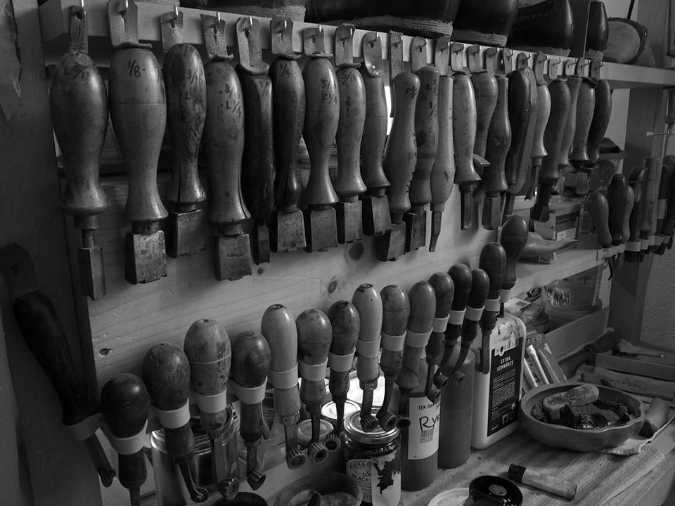 Featuring the shoemaker’s stock knife for hand-carved lasts
