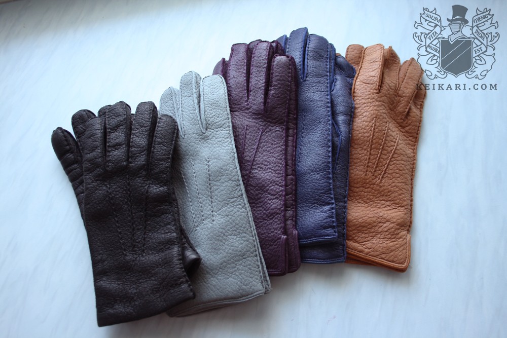 Peccaries are medium-sized mammals belonging to the New World pigs family. The creatures range from 90 to 130 centimetres in length, usually weighing 20 to 40 kilos, and are found from southwestern North America as well as Central and South America. Only the Chacoan peccary is protected, leaving several species available for meat and skins. Peccary leather is prized for its durability, elasticity and soft, grainy surface characterized by hair follicles in groups of three. While hides are occasionally used in footwear and decorations, most pieces end up in gloves. Peccaries are no pleasant farm animals, and most hides display natural cuts and bruises from romps or fights around the rainforest floor. Trade in legal peccary hides is controlled by CITES guidelines, ensuring sustainability and leading to high prices. Peccary gloves usually retail for over 100 euros in Europe, and several hundred dollars in America.