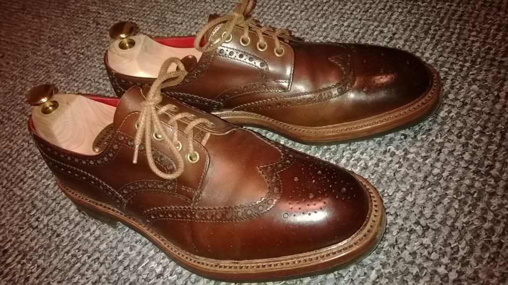 Kiitos, kengät ovat nämä samat Barbarossalta hankitut AS:t kuin parissa edellisessäkin kuvassa. Väri vähän vääristyi kuvassa. Tykkään erityisesti tuosta natural weltistä ja vaaleista nauhoista. Olleet aika ahkerassa käytössä näillä kosteilla keleillä. Takkiin miellyin kovasti jo heti päivän käytöllä. Jotkin vaatekappaleet vaan tuntuvat heti omalta.