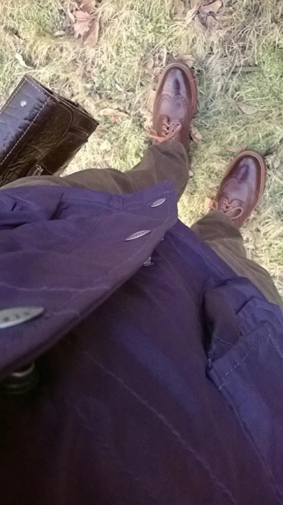 Itsellä ollut pitkään kaapissa käyttämättä tummanoranssi neule. Ei ole tuntunut oikein omalta väriltä. Piti tuosta eilisestä inspiroituneena kokeilla tänään, ja pistin Richardin profetiaa mukaillen pullonvihreät sammarit kaveriksi.