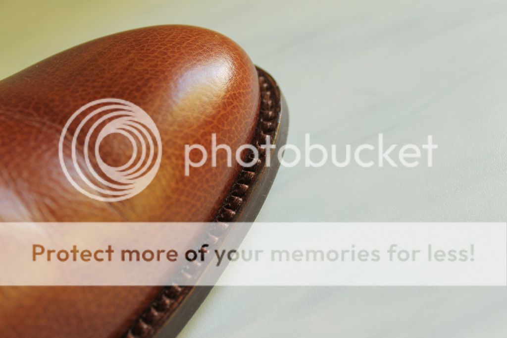 Ei se johdu pelkästään vuoresta vaan tuo kumimainen kiilto... Musta väri tuntuu korostavan cordovanin kiiltoa. Pidän enemmän vasikan nahasta. Sitä paitsi kyllä vuoren reuna pilkottaa käytettäessä sukan ja päällisen välistä.