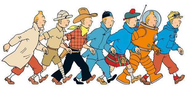Tuo Tintin valkoisen kauluspaidan ja sinisen puseron yhdistelmä taisi näkyä ensimmäisen kerran vasta Yksisarvisen salaisuuden lopussa. Sitä ennen useimmiten päällä on housuihin sopiva takki, keltainen kauluspaita ja musta solmio. Ottokarin valtikassa paita ja solmio ovat siniset. Mustan saaren salaisuuden ensimmäisessä väriversiossa on lisäksi yhdistelmä, jossa ruskeiden golfhousujen kanssa päällä on vaaleammanruskea slipoveri ja valkoinen kauluspaita.