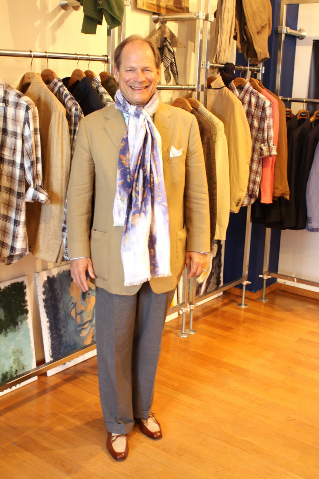 Hyvä kysymys! En itsekään ihan tarkkaan tiedä, että mitkä tarkalleen ottaen tähän vaikuttaa. Yleisesti jäykempi ulkonäkö viittaa pukuun. Yleensä kesäirtotakit vuorataan vain osittain, jotta takki olisi mukavampi helteellä. Se kuinka paljon vuorta laitetaan ja mihin kohtiin toki vaihtelee. Pukuun tehdyissä takeissa on useimmiten vuori kauttaaltaan, koska se on ryhdikkäämmän näköinen ja toisaalta se mahdollistaa epäsiistien kohtien peittämisen. Puvuissa harvemmin on esim. paikkataskuja tai paljetaskuja. Ne ovatkin irtotakin piirre. Johtuuko sitten siitä, että kummatkaan taskumallit eivät vaadi sitä vuorta sisälle kun tasku on toisella puolella..? Joku fiksumpi saa kertoa, mutta joka tapauksessa taskumallejakin luokitellaan muodollisuusastein. Paljetasku nyt ei ainakaan näytä kovin juhlavalta vaan joltain indiana jonesin viritykseltä. Nyt tuntuu olevan muotia, että irtotakeista tehdään paljon lyhyempiä kuin puvuntakeista, mutta itselle ei tuo pakarapeepshow maistu. Hartiat ovat usein puvuissa jäykemmät kuin irtotakeissa. Tuota piirrettä ei muuten voi käsittääkseni muuttaa ottamalla täytettä pois olkapäistä, vaikka tätä usein ehdotellaankin. Hartian ilme koostuu muustakin kuin vanulapusta ja topatustakin olkapäästä saa luonnollisen näköisen. Yksi vaikuttava tekiä on ainakin hihan kiinnitys. Jos siis haluttaisiin tehdä roped shoulderista jotakin ivytyylistä tulisi hiha irroittaa ja kiinnittää se eritavalla takaisin kiinni. Kaikki vyöt sun muut härpäkkeet ovat sitten irtotakkien juttuja, mutta ei niitä sielläkään tarvita. Kaikkia näitä ei toki ole tarkoitus tunkea samaan takkiin, mutta minusta tuossa takissa yleisilme oli melko puvuntakkimainen.